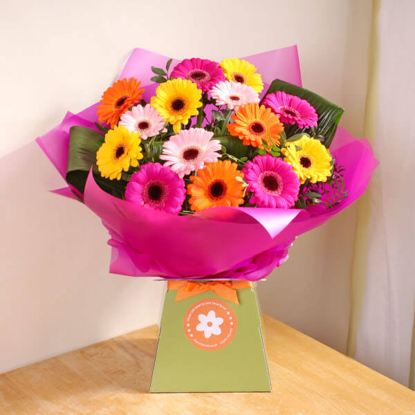 A vibrant gift box filled with germinis in vivid shades. A fun, colourful arrangement perfect for birthdays, celebrations or cheerful surprises.