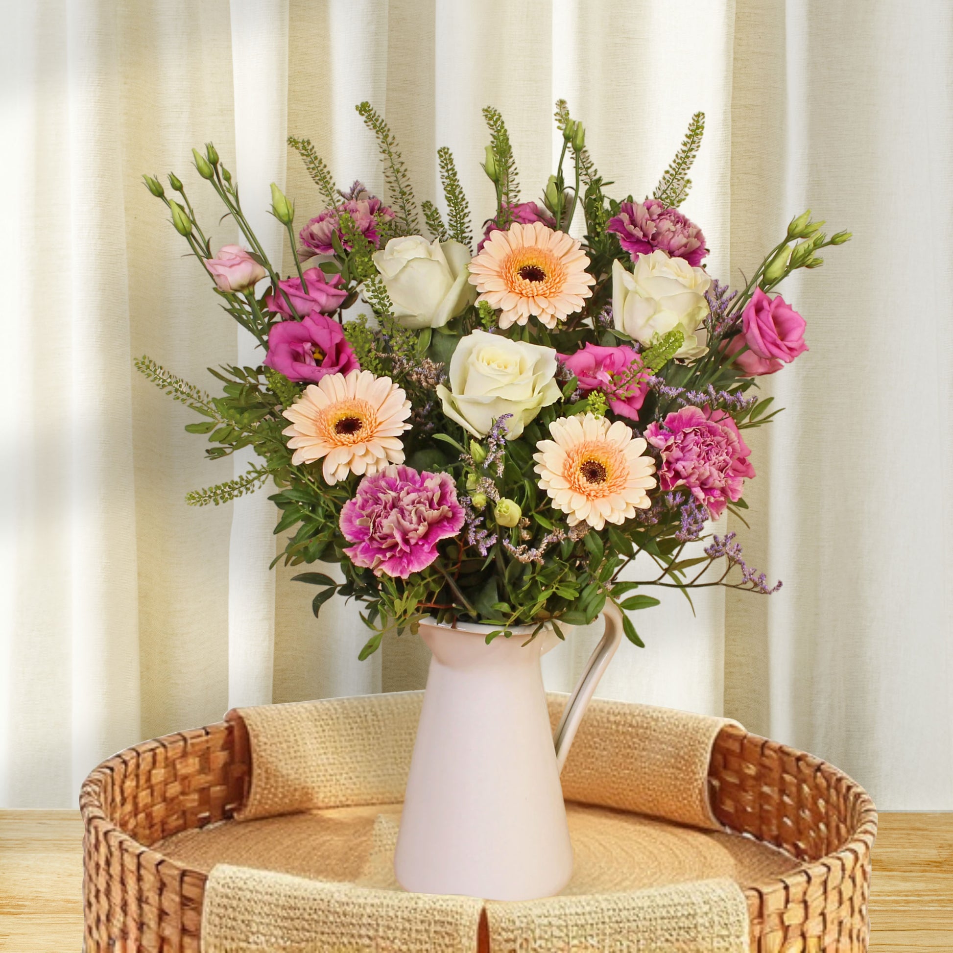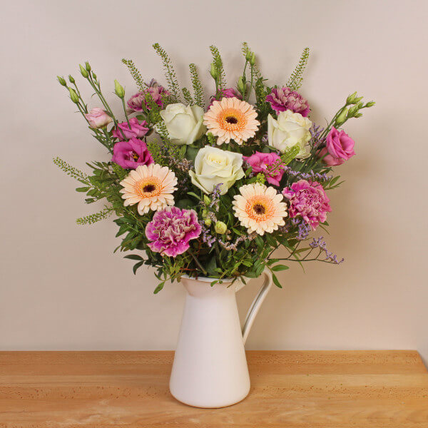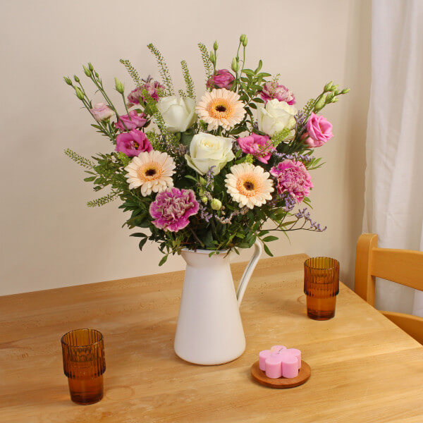 A fresh and uplifting bouquet of seasonal flowers, hand-tied for elegance and charm. Simple, yet stunning—a perfect gift to brighten any day.