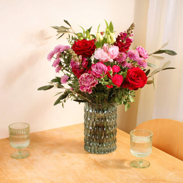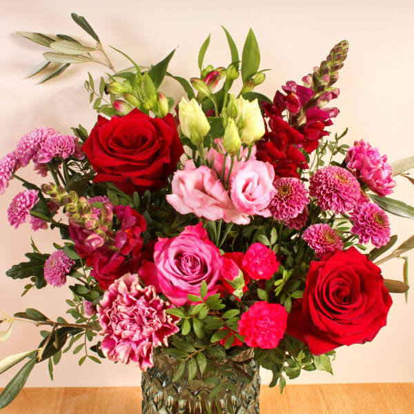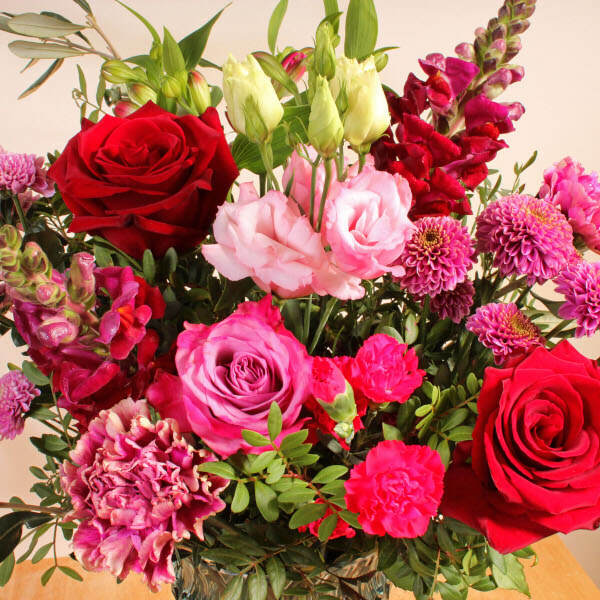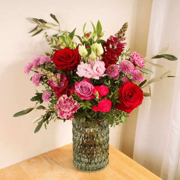A luxurious bouquet of red and lilac blooms, hand-crafted with elegance and flair. Delivered with care for maximum impact, The Elodie makes a truly memorable gift.