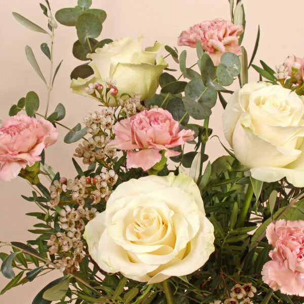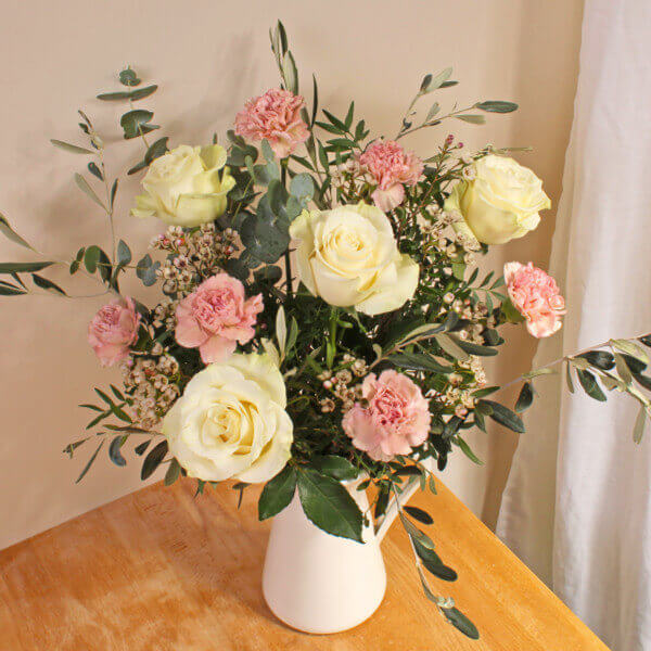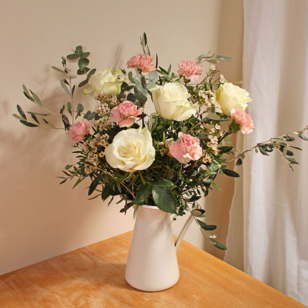 Soft pastel blooms arranged in a dreamy, serene bouquet. Perfect for expressing love, friendship, or appreciation—or simply as a calming floral addition to the home.